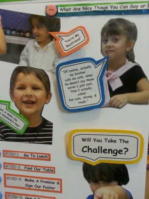We decided to come up with an exciting way to get students to be kinder. We came up with the idea to make a video using our preschool class. We are in a block class at school that allows us to run a preschool. We used the kids to make this video: